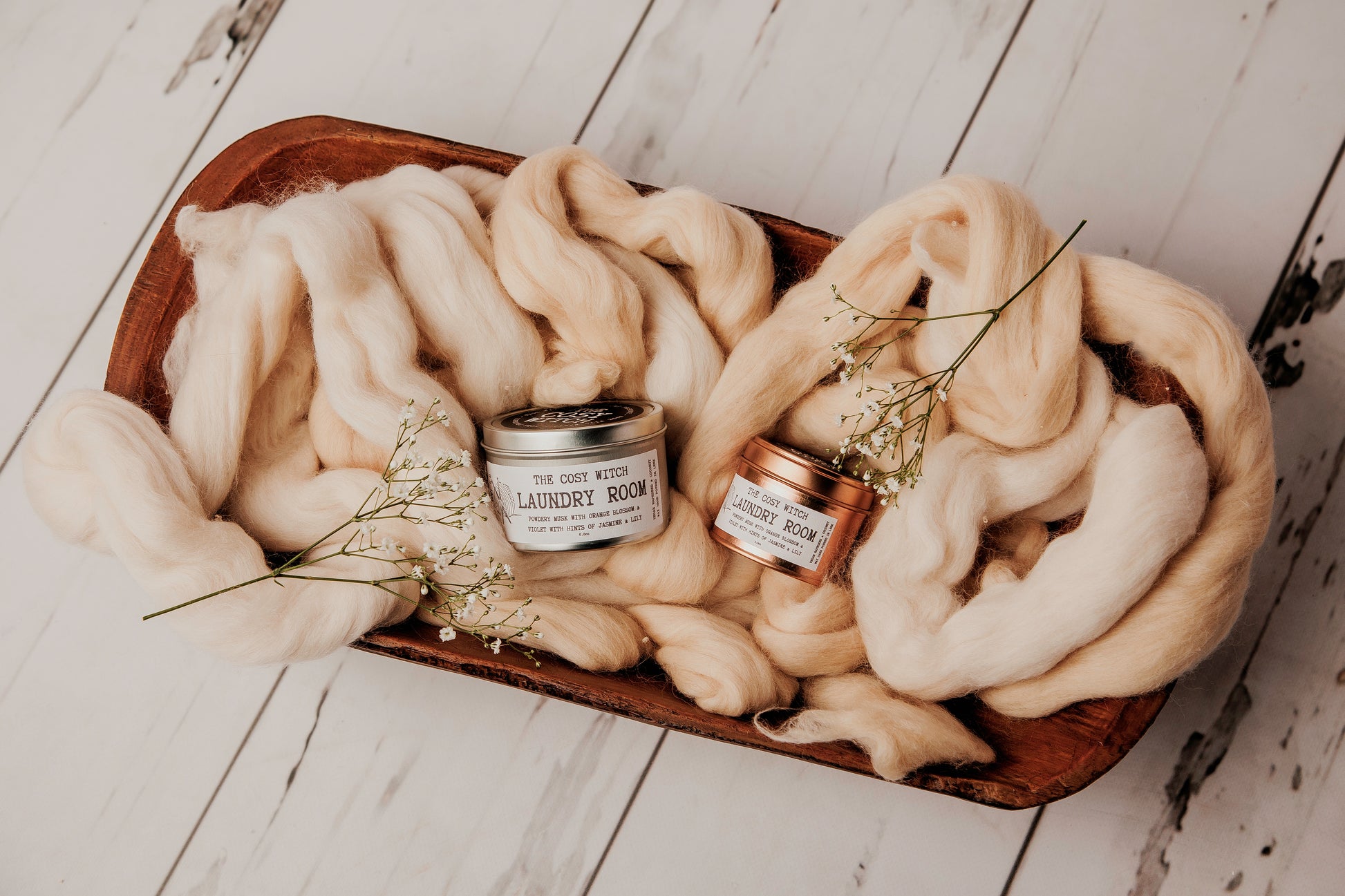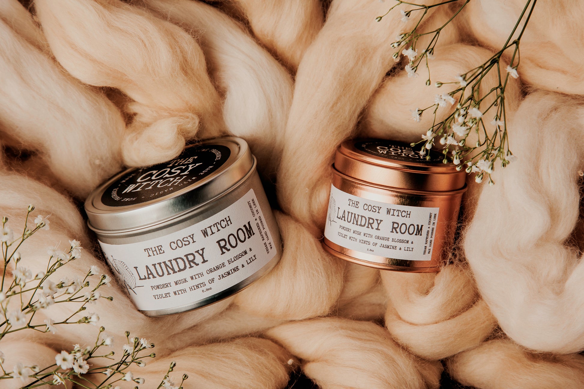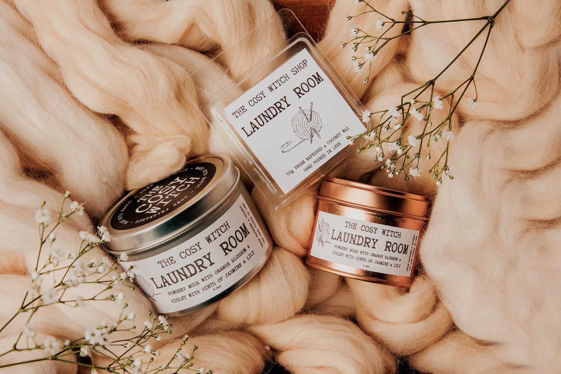 Available in a large tin (7oz), mini tin (3oz) wax melt (50g - 20+ hours)