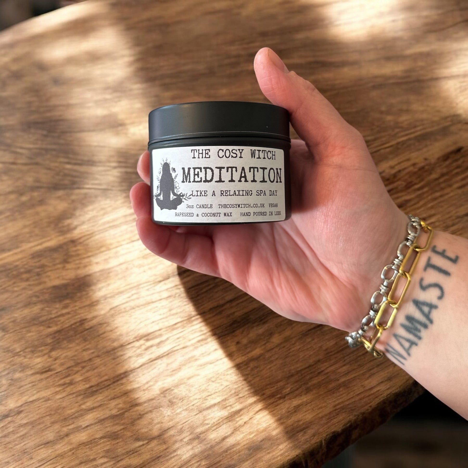 Available in a large tin (7oz), mini tin (3oz) wax melt (50g - 20+ hours)